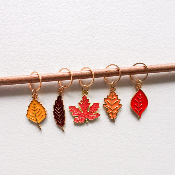 From Hello Kim, the Leaves Stitch Marker Set includes five stitch marker rings