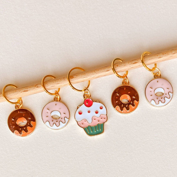 From Hello Kim, the Donuts Stitch Marker Set includes five stitch marker rings